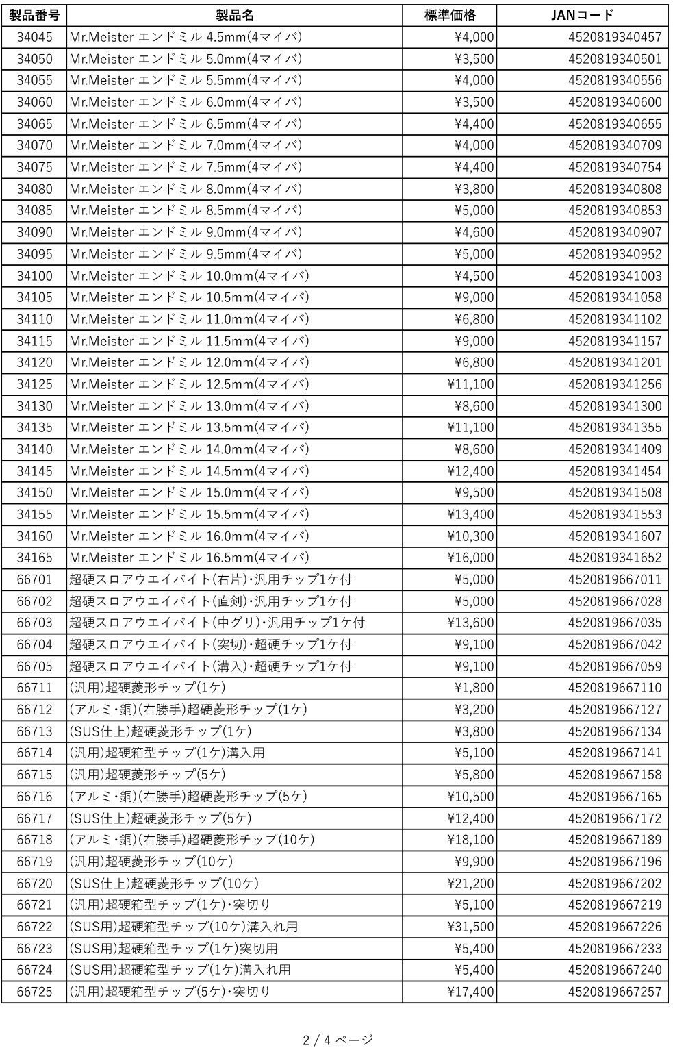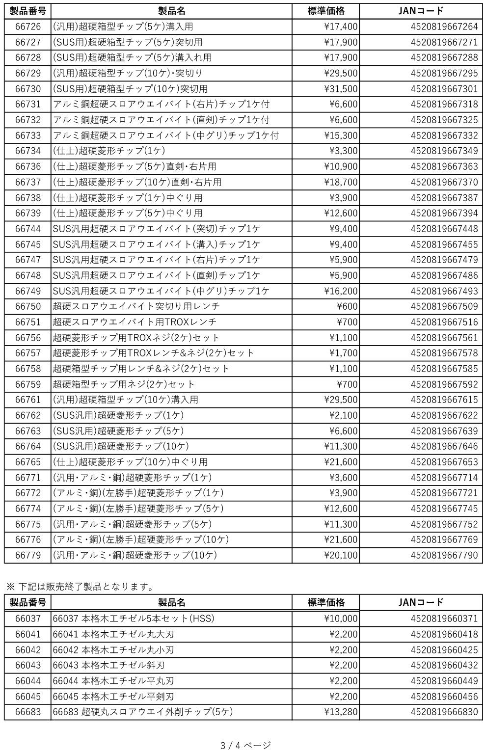 > 商品価格改定のお知らせ