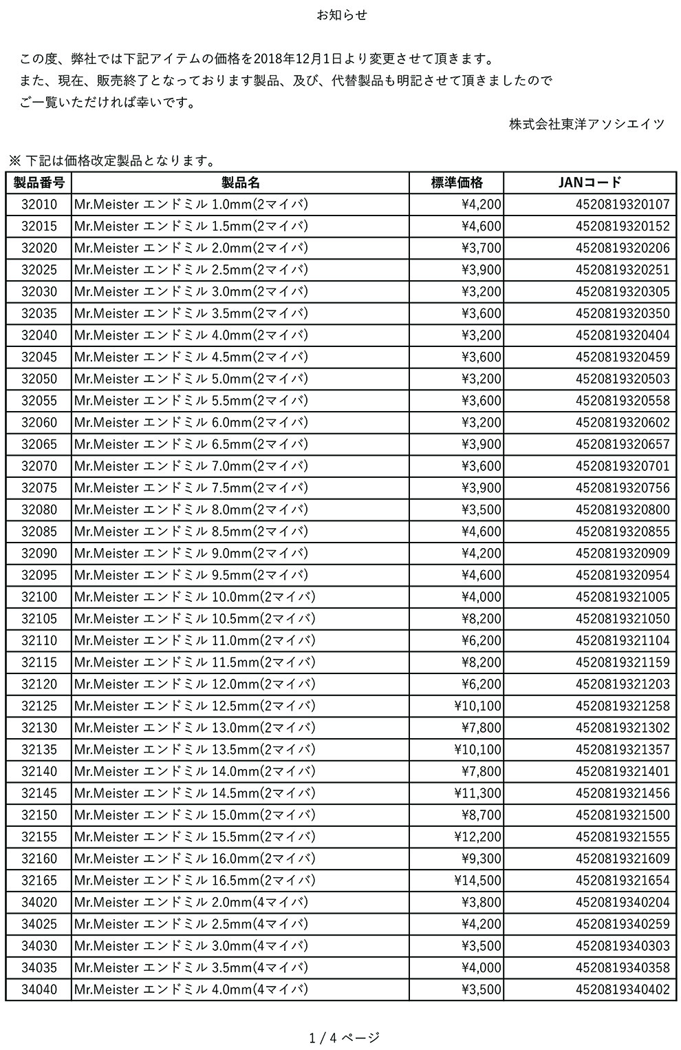 2018/11/29 : 商品価格改定のお知らせ
