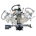| 簡単なレバー操作でポール盤の様に、簡易穴あけができます。ミーリングヘッドの昇降をハンドルレバーで操作できるので、上下トラベル分の昇降が行えます。 | ![]() |